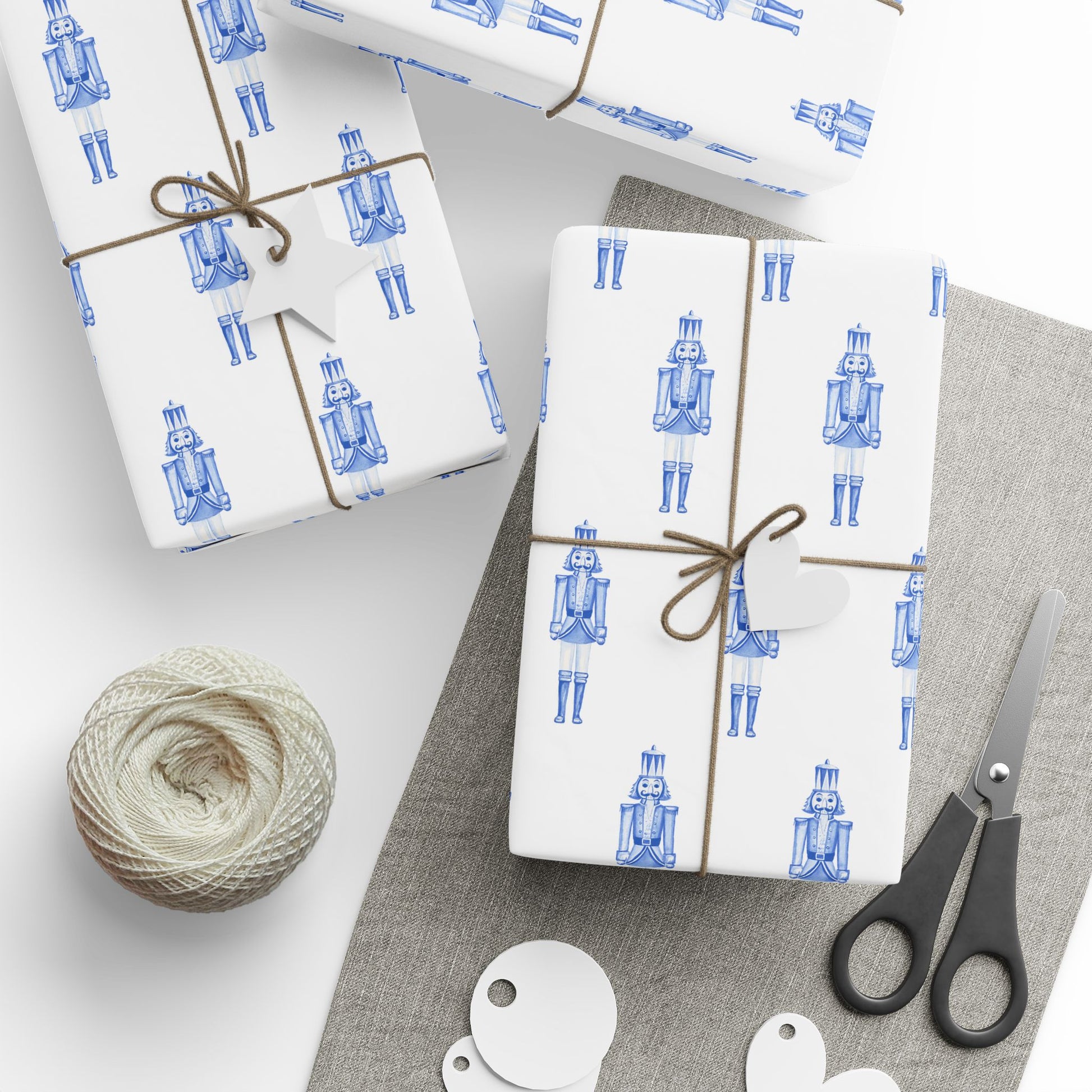 Nutcracker in Blue Fine Art Wrapping Paper — Festive Holiday Gift Wrap