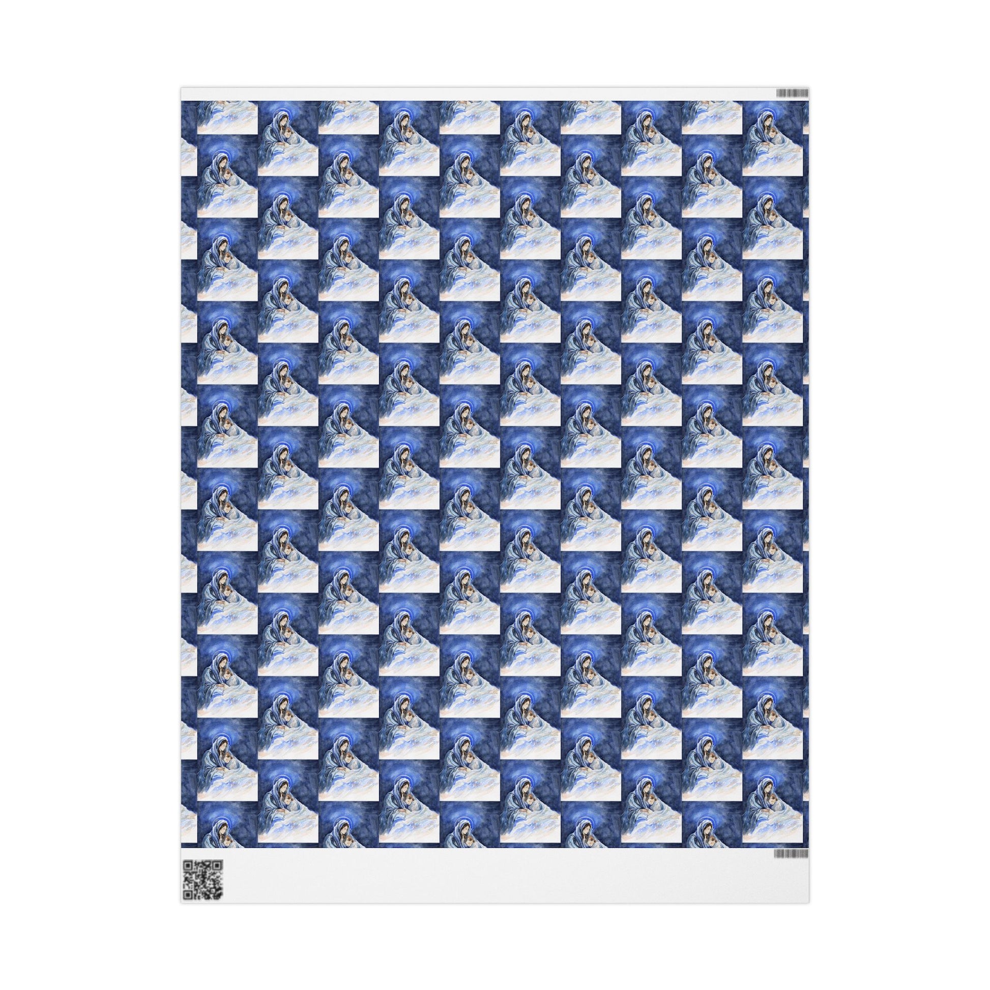 This religious gift wrap featuring our Blessed Mother and Jesus is perfect for wrapping gifts for a Christmas with Jesus at the center of the celebration. The design exudes a sense of reverence and faith, making it ideal for believers looking to add a spiritual touch to their gift-giving. Ideal for Christmas and other religious celebrations.